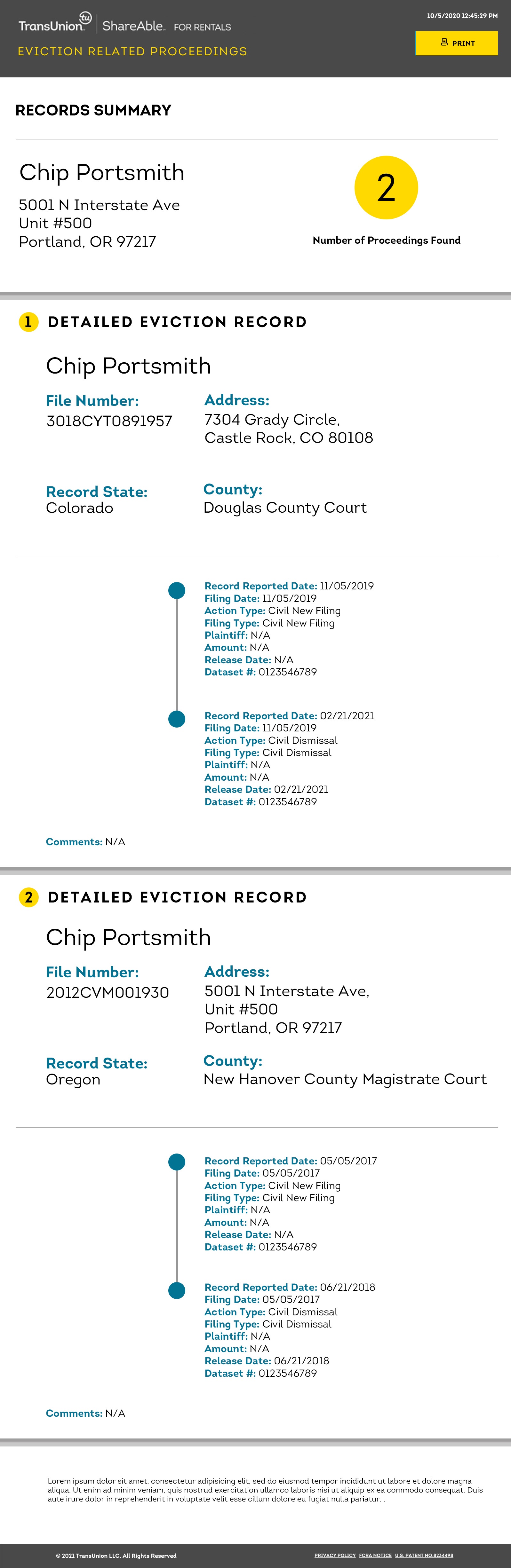 We partner with TransUnion to generate credit reports and background checks. The following reports are provided with Zumper's screening services: